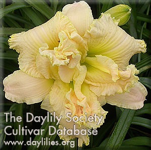 | Description : bright pastel cream pink with gold edge above green throat | |