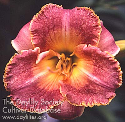 | Description : pink with large deep pink eye overflowing the sepals, white midribs in the eye and the sepals with a glare of median green throat | |